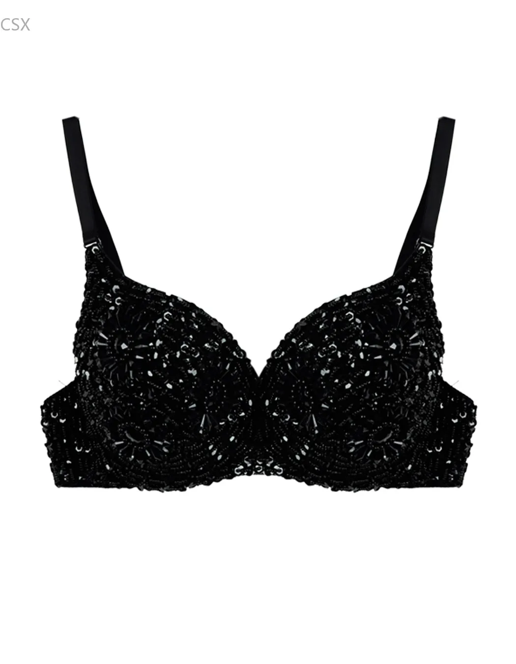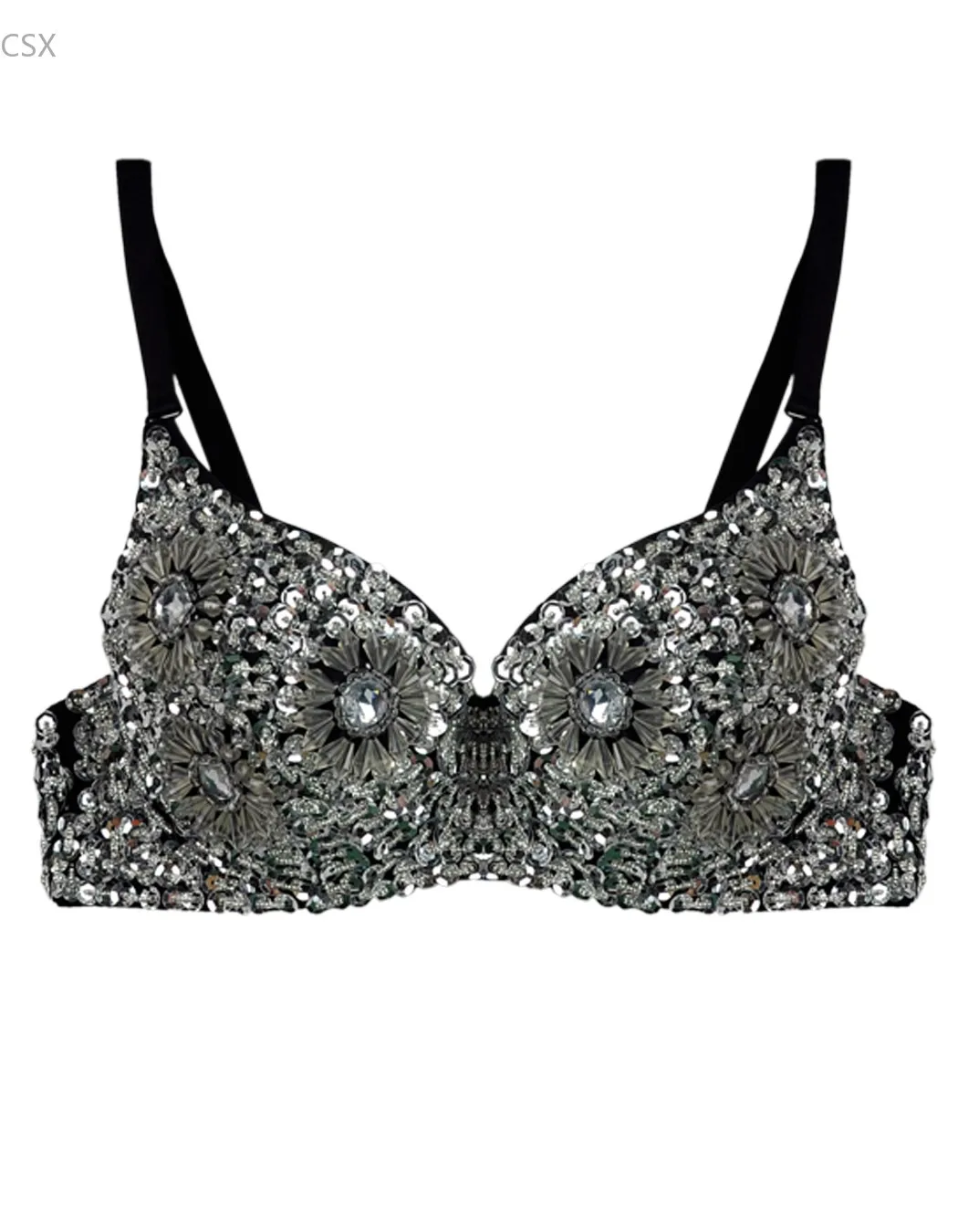 MwOiiOwM Sexy Women's Beaded Sequins Embellished Chrysanthemum Bra B/ C Cup Belly Dance Underwear p