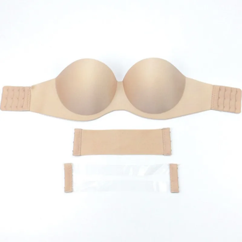 Sexy Strapless Sticky Bra Women Silicone Adhesive Clear Bra 3/4 Cups One Piece Seamless Padded Wireless Invisible Bra Push Up