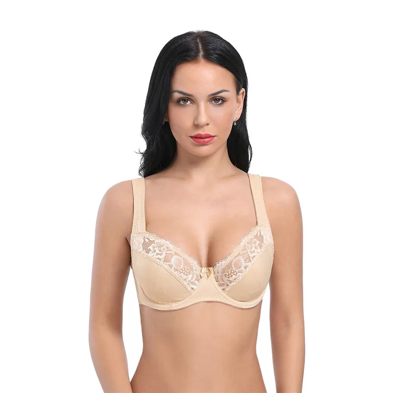 Best deal Ayliss Free Shipping 1pc Nude Women's Full Coverage Non-Padded Bra Soft Cup Floral Lace Underwire B