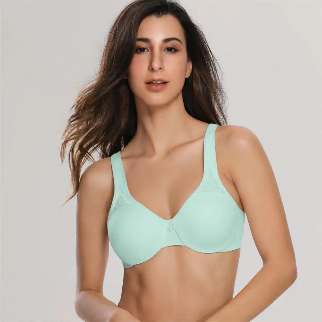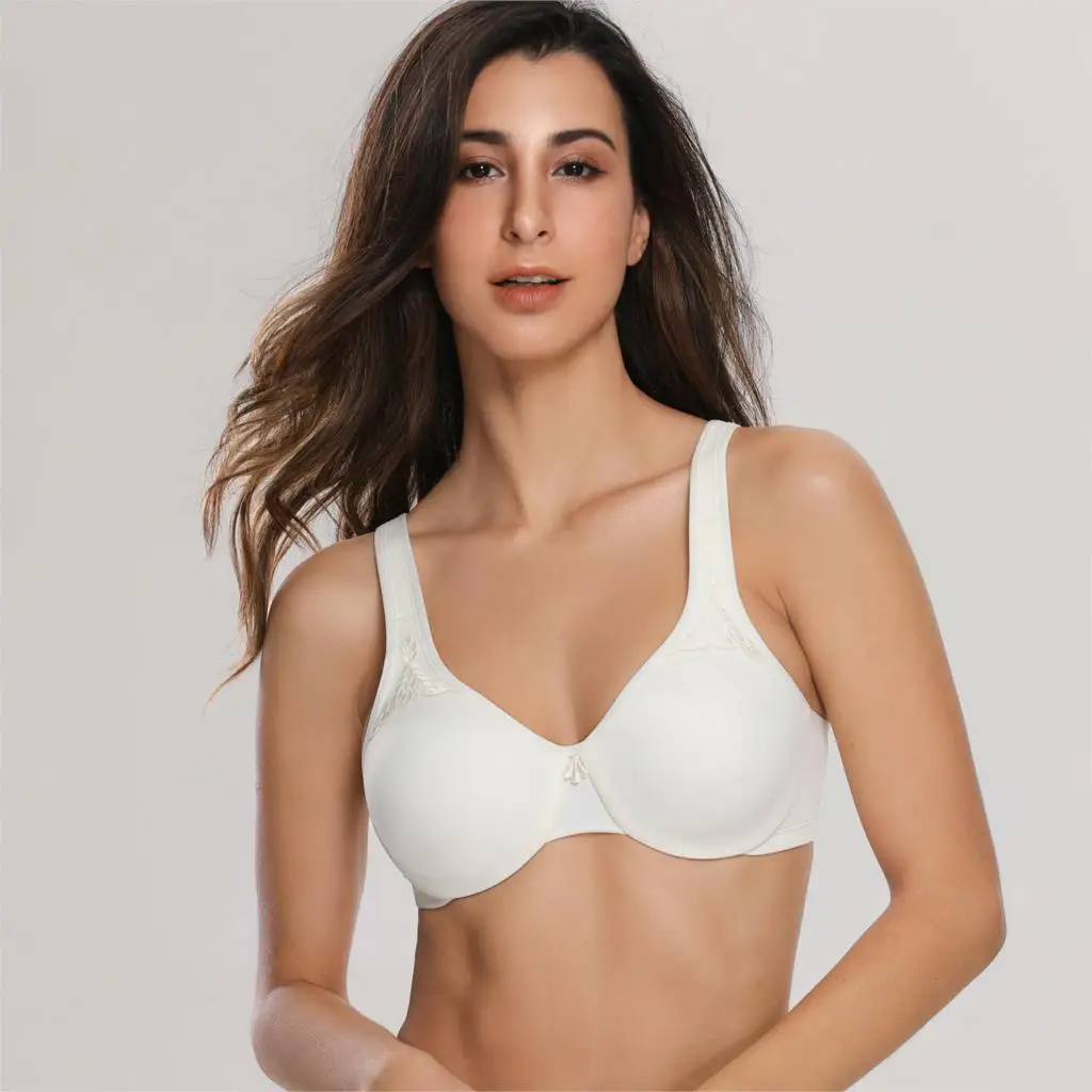 Affordable Offer for Women's Smooth Full Figure Underwire Embroidery Seamless Minimizer Bra Plus Size
